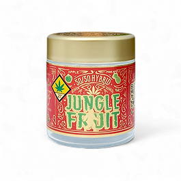 Jungle Fruit is a hybrid weed strain made from a genetic cross between Green Crack and Phantom Cookies (Pink Champagne). This strain is 50% sativa and 50% indica. Jungle Fruit has a rare and exotic lineage, as it is the only strain cultivated by Grow West in Maryland. Jungle Fruit effects include feeling relaxed, happy, and euphoric. Bred by Exotic Genetix, Jungle Fruit features flavors like pineapple, lemon, and apple.